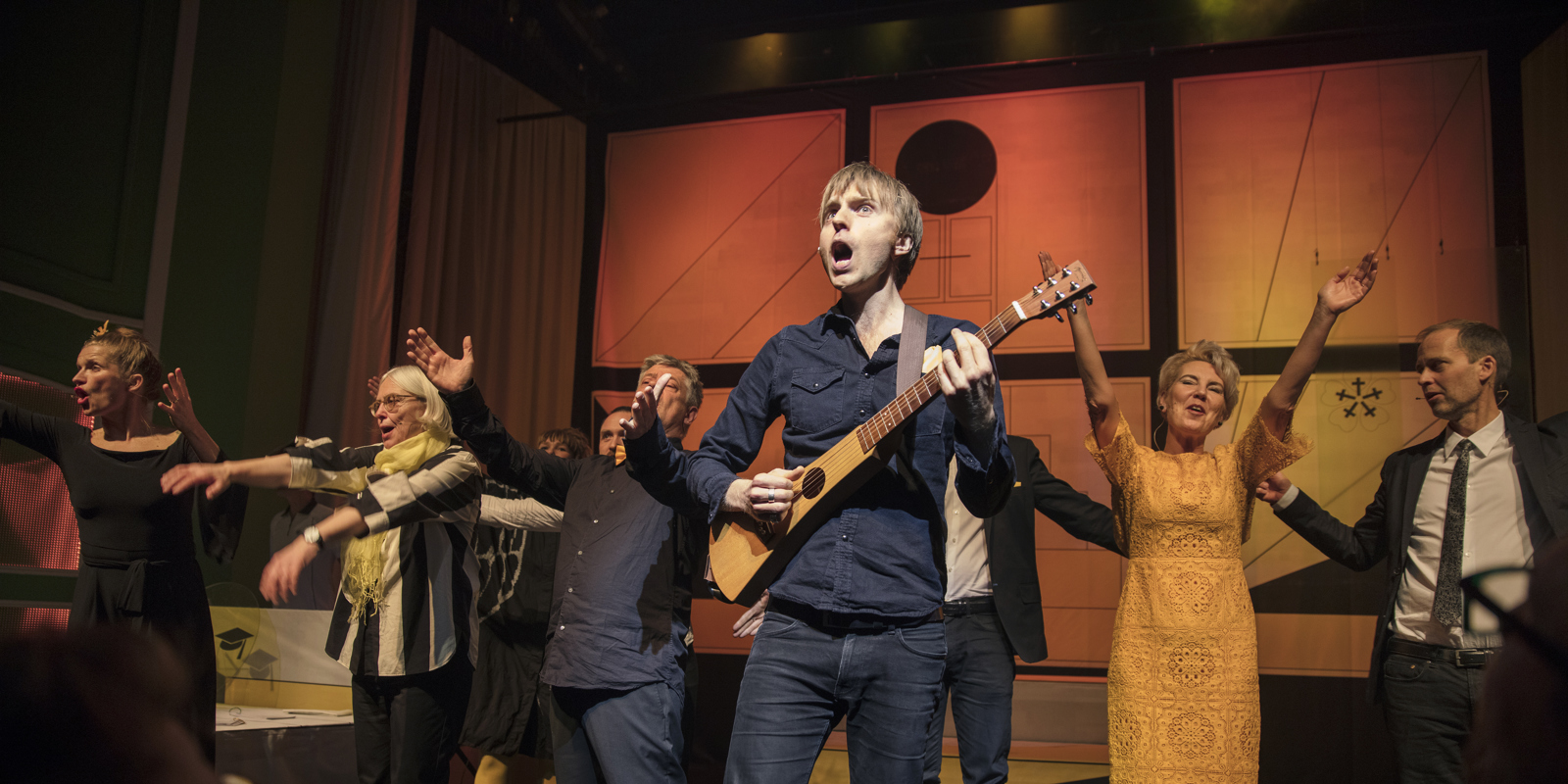 Vi har blandt andet arbejdet med en lang række sceniske produktioner, hvor vi tager forskerne og deres viden med på de skrå brædder i bl.a. Aarhus Teater, Hofteatret og Nørrebro Teater. Disse produktioner tæller bl.a. Sebastian Dorset og forskerne på slap line, Historisk Talkshow (senest med Martin Luther, der blev spillet af Bjarne Henriksen, under Reformationsmarkeringen i 2017) og Rundt om Holberg – en nutidig klassiker.